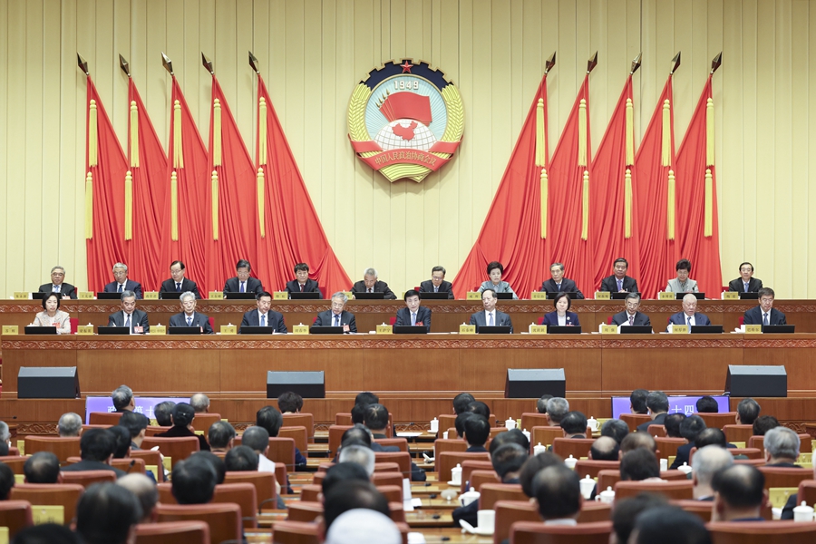 3月9日下午,政协第十四届全国委员会常务委员会第六次会议在北京举行。中共中央政治局常委、全国政协主席王沪宁主持会议。新华社记者 丁海涛 摄