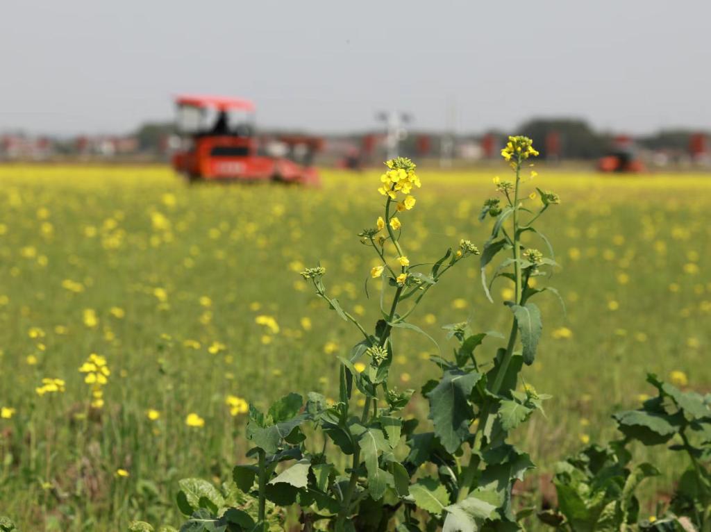在谢家铺镇港中坪村,一片片黄绿交织的油菜花海中,一台台旋耕机在田间来回作业,将油菜和紫云英翻耕进土中,沤成肥料。这里的油菜并非榨油的食用油菜,而是村民用来给土壤和水稻调节营养的绿肥,可以增加土壤有机质。