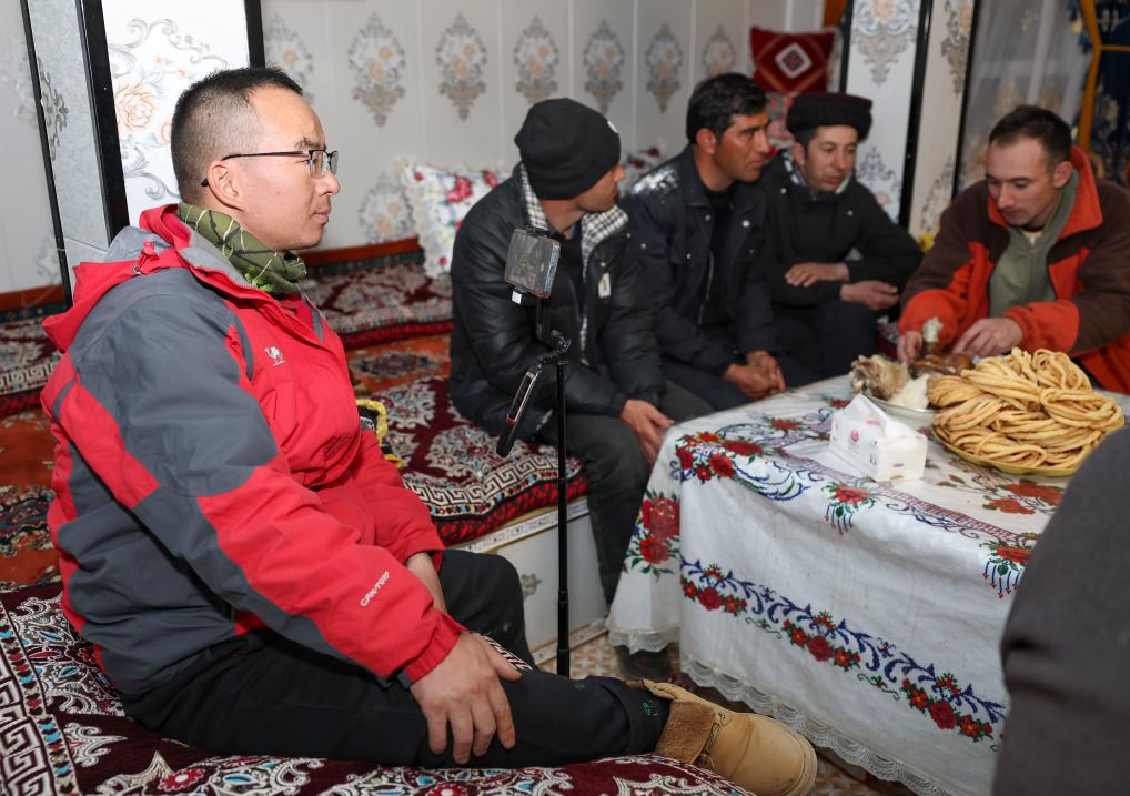 曾勤增在瓦恰乡村庄拍摄村民聚会(3月23日摄)。新华社记者 胡虎虎 摄