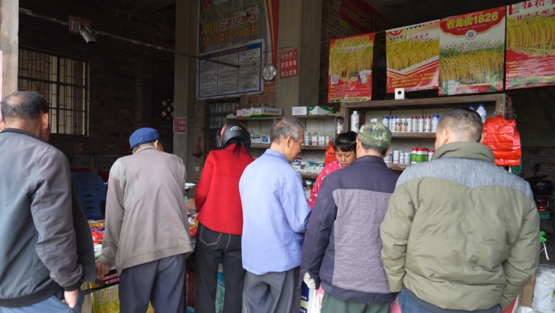 村民在广西樟木镇的农业技术咨询服务部里购买稻种。(视频截图)