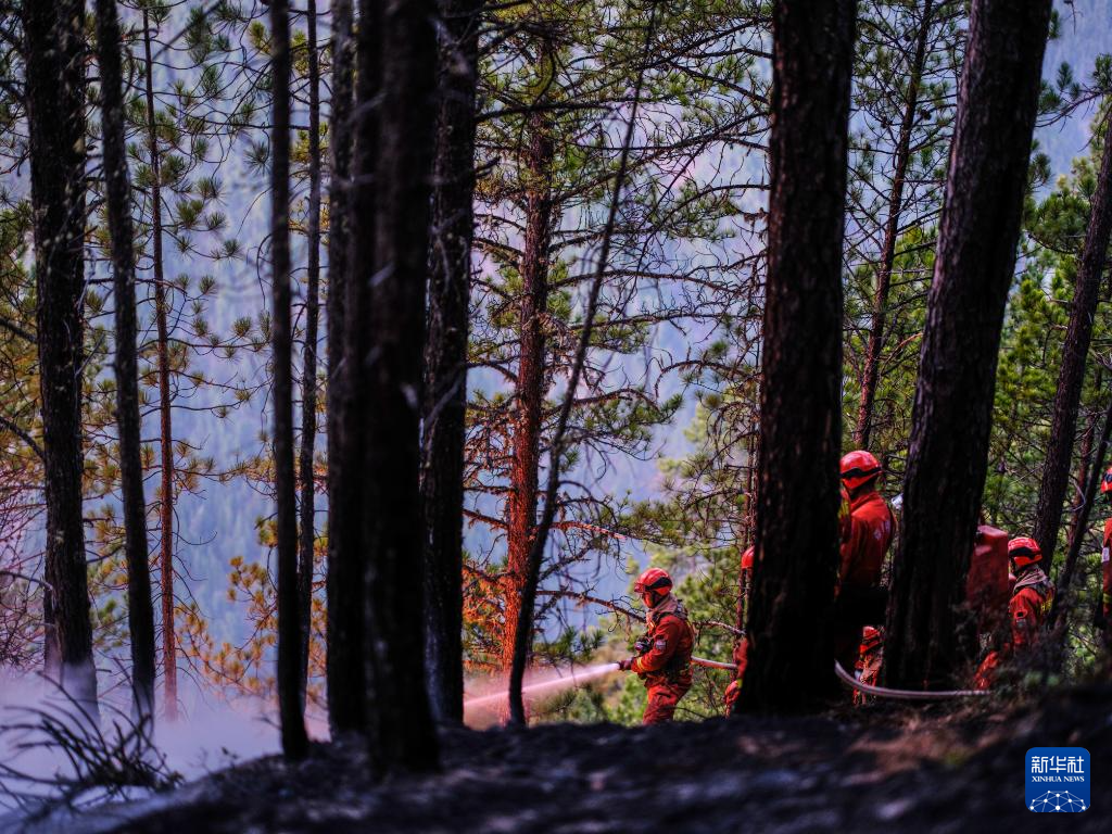 3月21日,四川省森林消防总队特勤大队消防员在火场清理烟点。新华社发(程雪力 摄)
