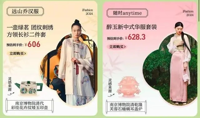 就在近期,南京博物院和淘宝服饰的联名春季华服系列“春和景明”首发。网友表示,这样的潮流时尚款,既保留了传统审美的优雅又增加了现代时装的便利性,让大众更加容易接受,走向日常。