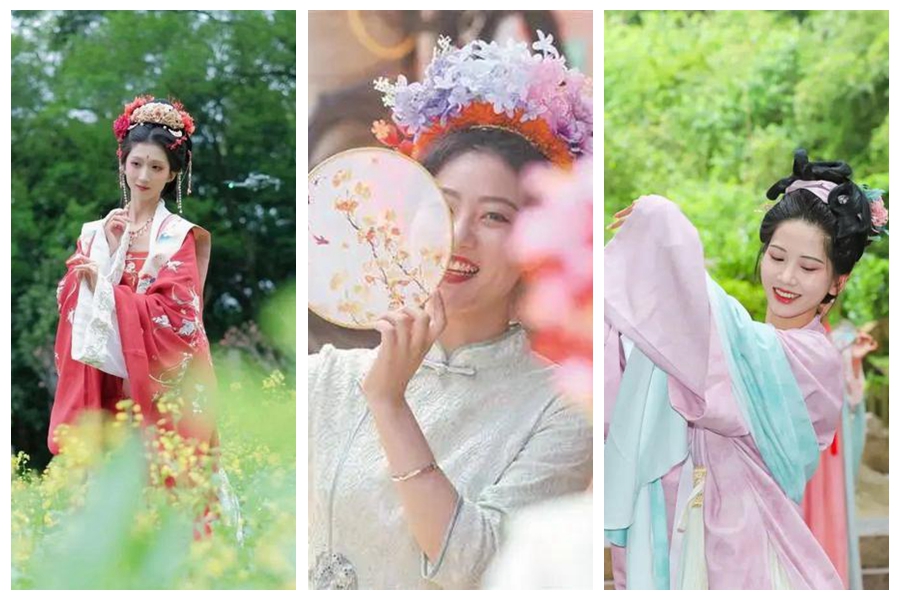 在今年的赏花大军里,“新中式”穿搭分外抢眼。不少网友分享:穿上仙气飘飘的汉服,发间别上粉嫩剔透的花瓣,路径花林,一身落英缤纷,唯美浪漫。