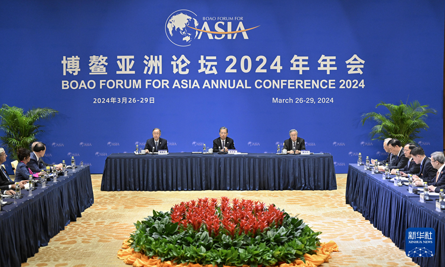 3月27日,全国人大常委会委员长赵乐际在海南博鳌与中外企业家代表座谈。新华社记者 庞兴雷 摄