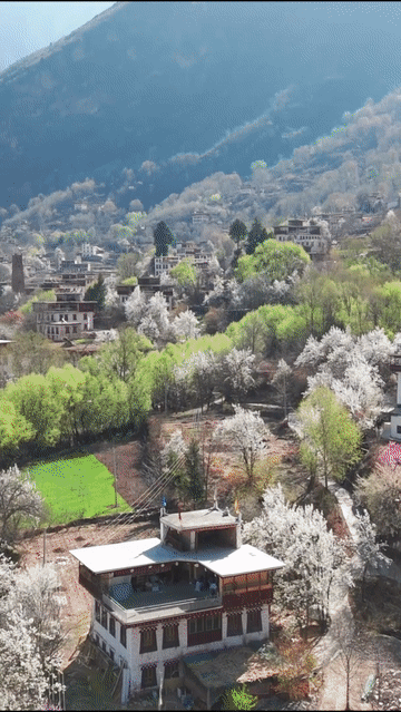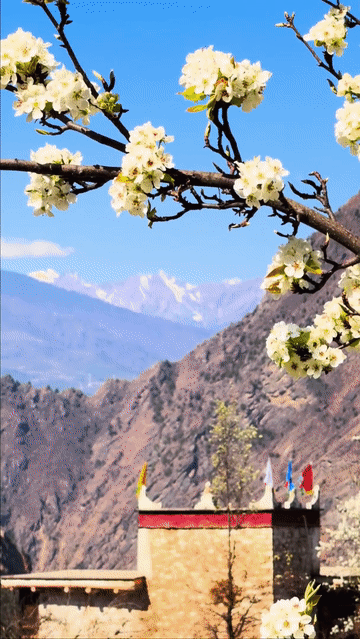 春光明媚,花开正当时。四川省甘孜藏族自治州丹巴县的梨花次第绽放,雪山、碉楼、藏寨共同勾勒出一幅春日藏寨梨花图。