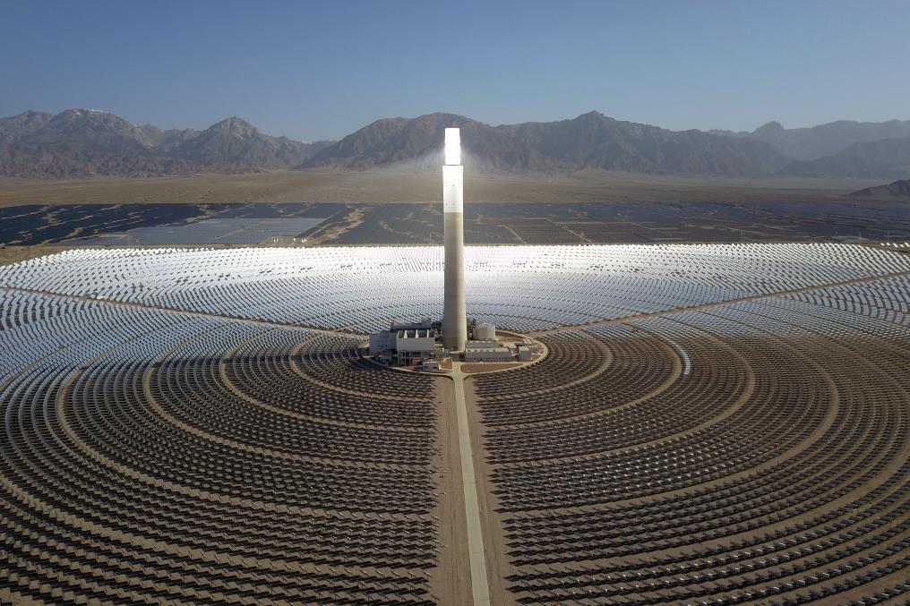 这是2022年6月8日在海西州德令哈市光伏(光热)产业园拍摄的光热电站(无人机照片)。新华社记者 范培珅 摄