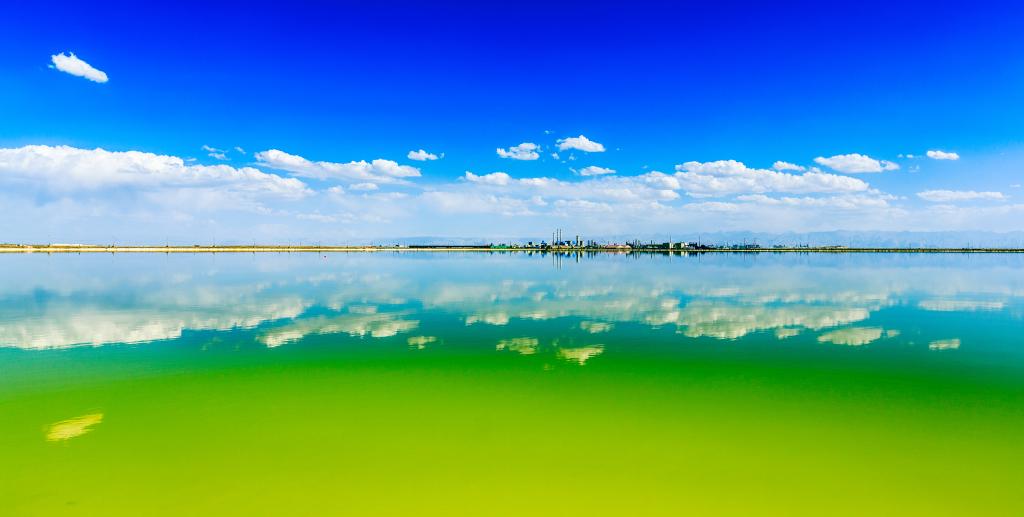 春风吹拂下,在位于青海省海西蒙古族藏族自治州的察尔汗盐湖,碧波荡漾的盐田上泛起阵阵涟漪,倒映着蓝天白云,景色壮丽。青海盐湖工业股份有限公司的一艘艘采盐船在盐田里缓缓游弋,将光卤石原矿源源不断地采收、运送到钾肥生产车间。