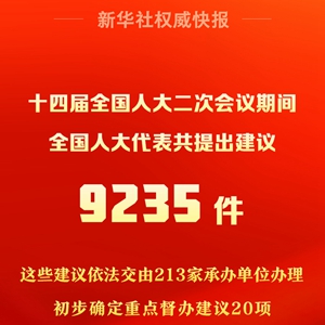 全国人大代表共提出建议9235件