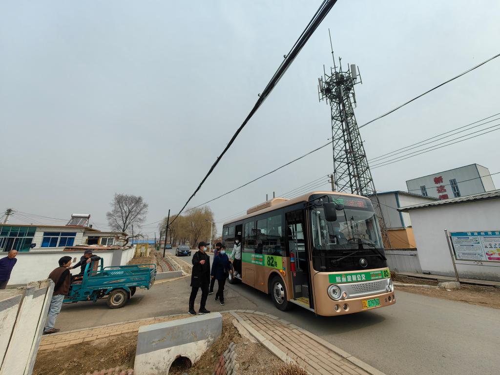 4月2日,“网约公交车”到古城子村村口接送村民。 新华社记者白涌泉 摄