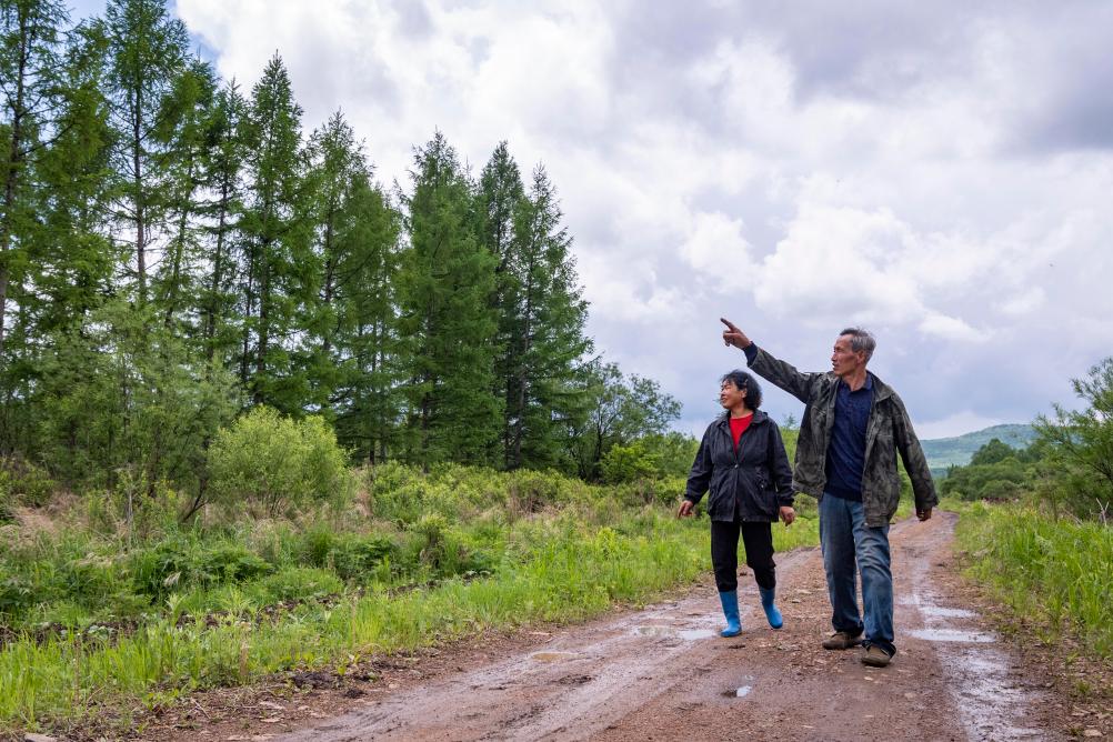 2021年6月3日,在黑龙江省伊春市乌马河林业局有限公司乌马河林场分公司施业区,张英善、燕玉平夫妇在巡山。