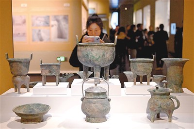 参观者在河南安阳殷墟博物馆新馆内拍摄展品。新华社记者 李 安摄