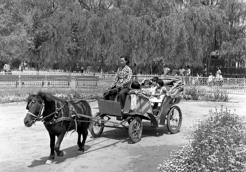 1956年,北京动物园儿童体育场里有一辆专为儿童们乘坐的小马车,很受孩子们的欢迎。