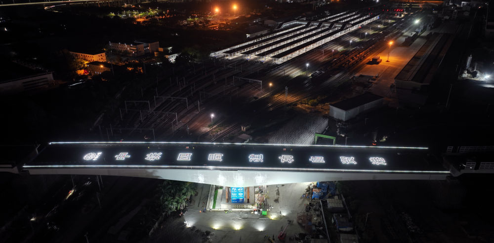 海口新海港和南港“二线口岸”(货运)集中查验场所附属专用通道转体梁转体成功(2024年4月3日摄)。新华社发