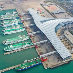 这是海口新海滚装码头客运综合枢纽站项目,是海南自贸港封关运作的重要配套设施(2023年11月29日摄,无人机照片)。新华社记者 郭程 摄