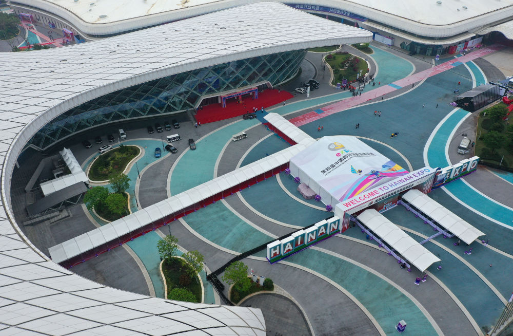这是2024年4月11日拍摄的第四届中国国际消费品博览会主会场海南国际会展中心(无人机照片)。新华社记者 郭程 摄