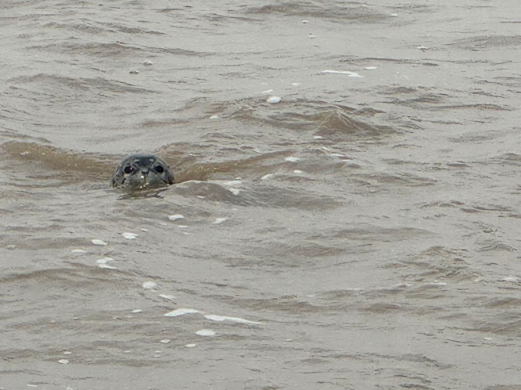 快艇顺着水流漂离了这群小家伙们的栖息地,记者依依不舍地向岸边望去。不经意低头时,又惊喜地看到一只斑海豹的脑袋探出水面,好像也在告别。作为唯一一种能在中国繁殖的海洋“鳍足类”哺乳动物,斑海豹们每年隆冬时节都会回到辽东湾海域,在浮冰上产仔,直至次年4月再北上度夏。