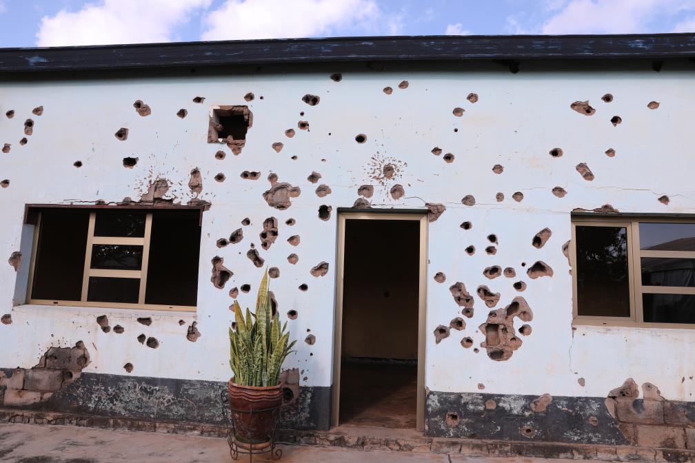 尼亚玛塔教堂位于东方省布盖塞拉地区,红色砖墙上的弹孔和豁口如今仍然清晰可见。教堂旁的遇难者遗物展厅里还放着小学生的作业本和文具,但它们的主人再也回不到课堂。