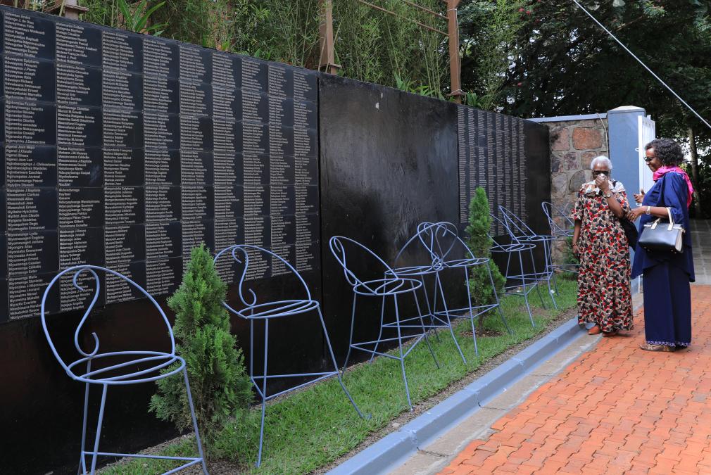 4月8日,在卢旺达首都基加利,人们在基加利大屠杀纪念馆参观遇难者名单墙。新华社记者董江辉摄