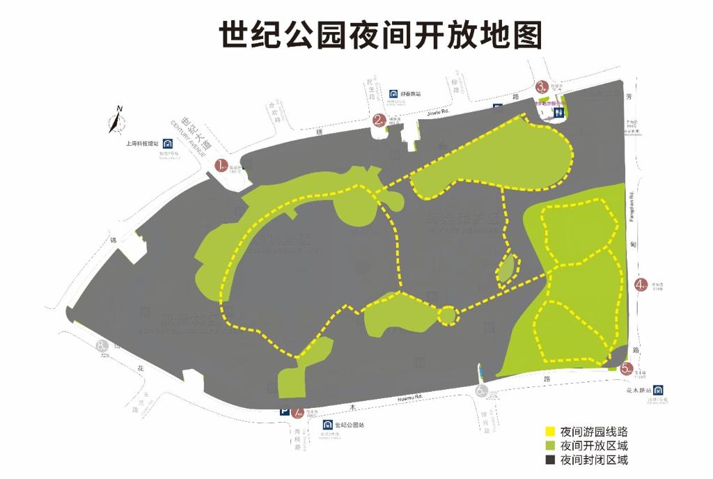 世纪公园5月1日拟实行24小时开放的区域示意图。(园方供图)