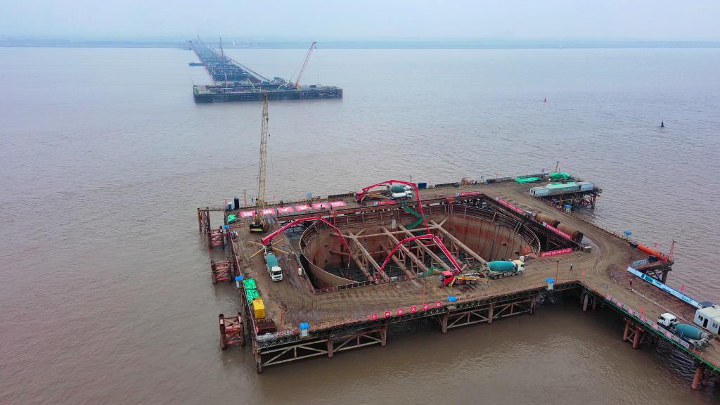 近日,崇启公铁长江大桥3、4号主墩承台正在进行第二次浇筑作业。项目建成后,将在上海大都市圈、南京都市圈和合肥都市圈间建起一条快速新通道,对于优化沿长江地区铁路网布局、服务长江经济带协同发展,推动长三角高质量一体化发展等具有重要意义。