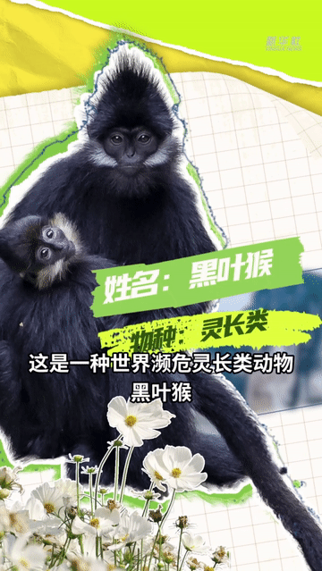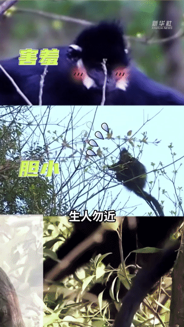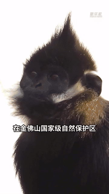 这是一种世界濒危灵长类动物——黑叶猴。在金佛山国家级自然保护区黑叶猴栖息地,有180余只黑叶猴生活在这里。它们害羞、胆小、生人勿近。