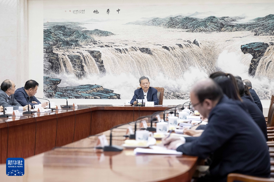 4月25日上午,中共中央政治局常委、全国人大常委会委员长赵乐际同列席十四届全国人大常委会第九次会议的全国人大代表座谈交流。新华社记者 李涛 摄