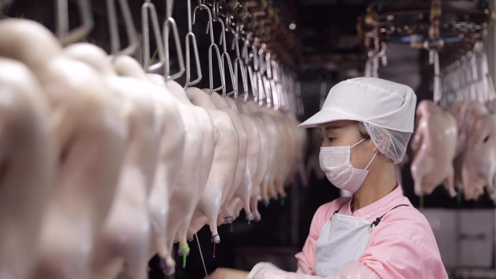 图为内蒙古九牧合农牧科技有限公司肉鸭屠宰分割生产线。(汪洛狄摄)