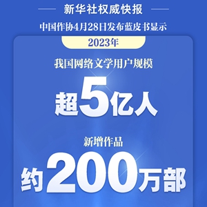 中国作家协会4月28日在上海发布的《2023中国网络文学蓝皮书》显示,我国网络文学用户规模已超5亿人,作品总量超3000万部,年新增作品约200万部,现实、科幻、历史等题材成果丰硕,主流化、精品化进程加快。