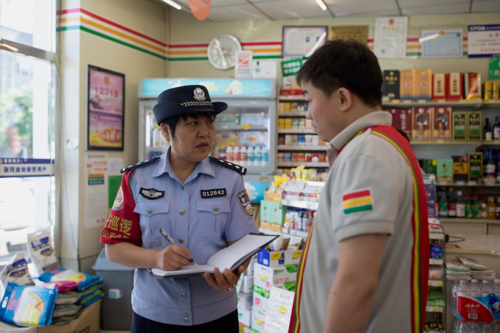 4月2日,民警索连红在小召前街派出所的办公室内记工作笔记。