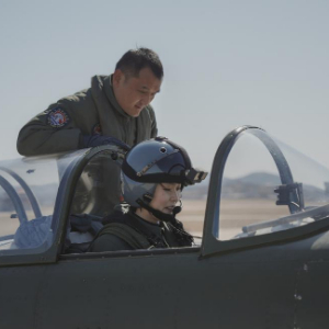 飞机停稳,座舱盖打开,谷圣伟登上飞机,与马宇华庆祝,这位平日里姑娘们口中的“硬汉教官”流下了眼泪。