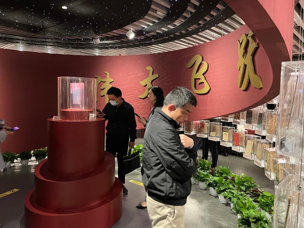 围绕在马克思手稿背后,140本马克思主义中国化时代化理论成果呈矩阵式陈列,充分展现马克思主义在中国的蓬勃生命力。
