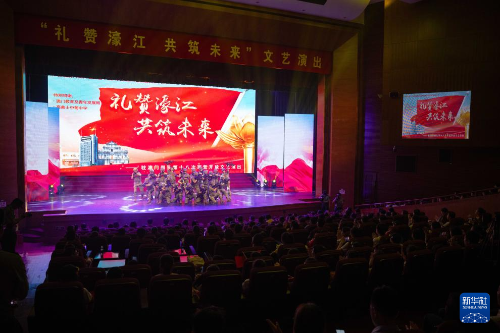 4月30日,中国人民解放军驻澳门部队官兵在联谊演出活动上表演。 新华社记者 张金加 摄