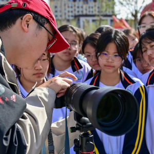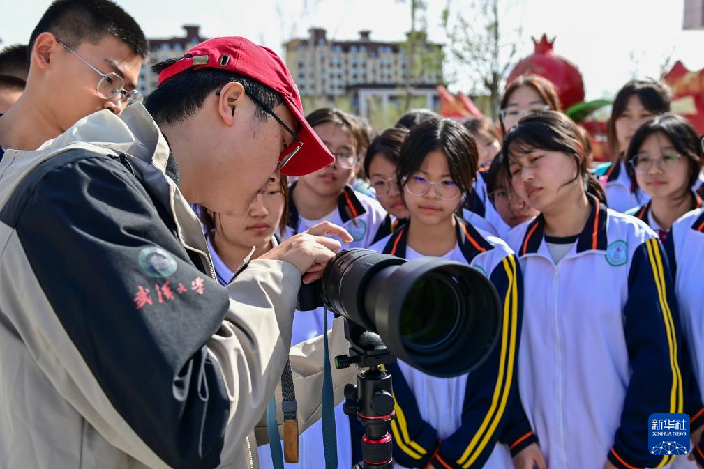 在新疆双河市高级中学,第25届支教团成员王仡柯(前)给同学们上摄影选修课(4月11日摄)。新华社记者 丁磊 摄