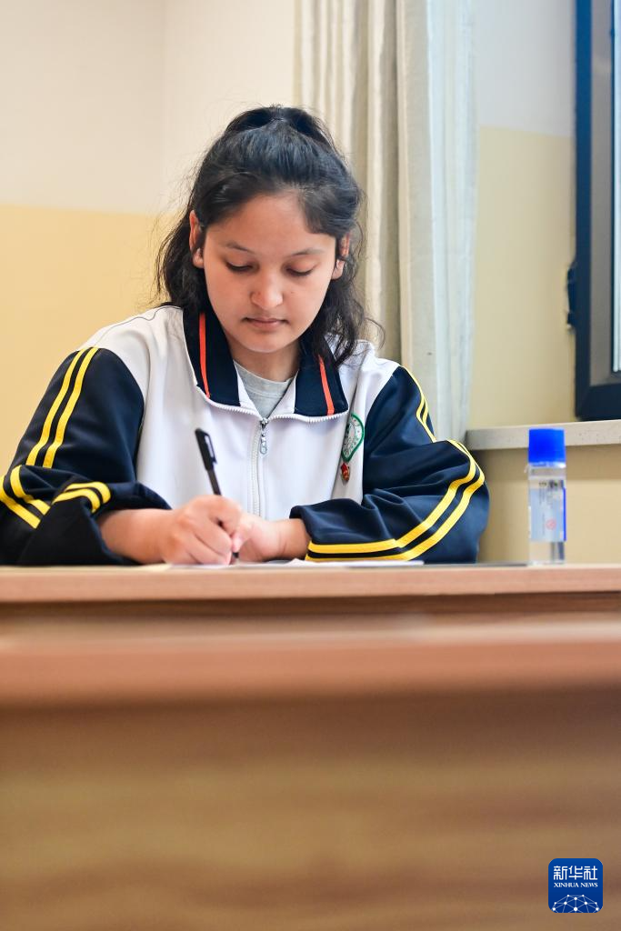 在新疆双河市高级中学,学生阿瓦克孜给武汉大学学生写信(4月12日摄)。新华社记者 丁磊 摄