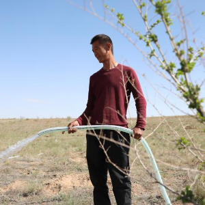 选择留下后,郭玺就把他的全部热情和能量奉献给了八步沙,每年大地解冻、万物复苏的时候,郭玺就开始了忙碌。植树造林,压沙治沙,等新一年的植树季过去后,接下来便是繁复劳累的浇水工作。为了让苗子喝饱水,郭玺每天都要开着重型洒水车接水、运水、浇水,一天平均要拉八九趟。