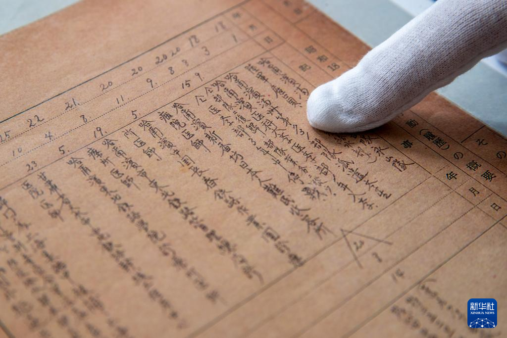 4月29日,侵华日军第七三一部队罪证陈列馆研究人员整理《身上申告书》(影印件)。新华社记者 张涛 摄