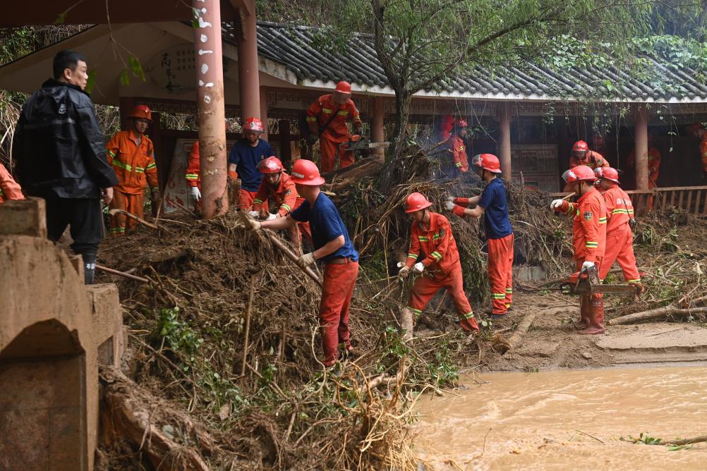 7日凌晨2时许,记者在六肥村看到,雨势已停、洪水渐退,消防、应急、电力、通讯等部门的工作人员连夜开展各项灾后救援工作。