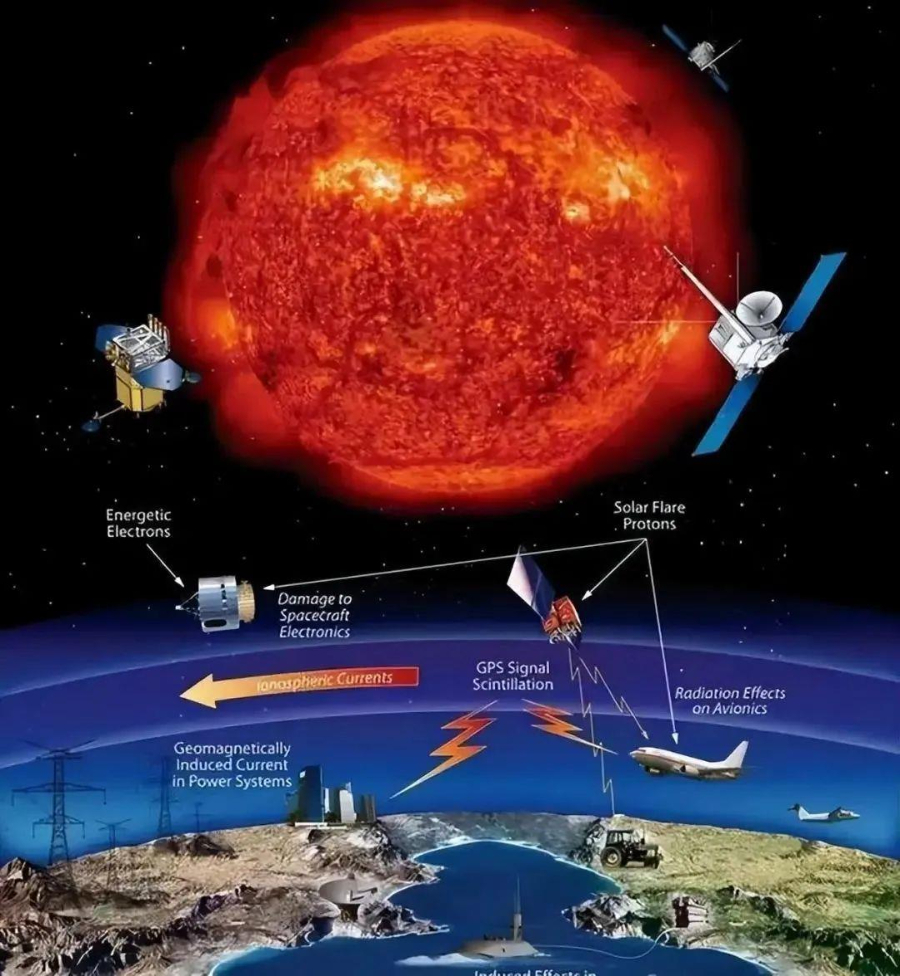 强烈的地磁暴可能会对电力传输系统产生影响,增加输电线路的电流负荷,有时甚至可能导致变压器或其他电网设施损坏,引起电力中断。