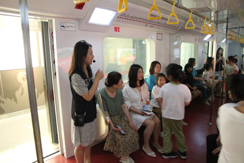 讲解员在四川省防灾减灾教育馆向参观者讲解地铁火灾逃生的正确方法。新华社发