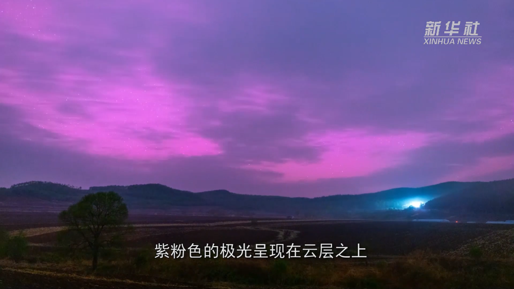 受地磁暴爆发影响,5月11日夜至12日凌晨,黑龙江省牡丹江东宁市观测到绚丽多彩的极光。紫粉色的极光呈现在云层之上,色彩艳丽,景象壮观。