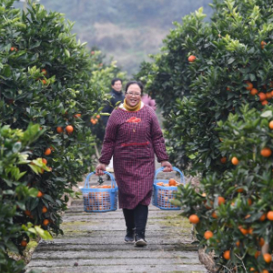 重庆市璧山区七塘镇跃进村村民在提运刚采摘的血橙(2022年1月6日摄)。新华社记者 王全超 摄