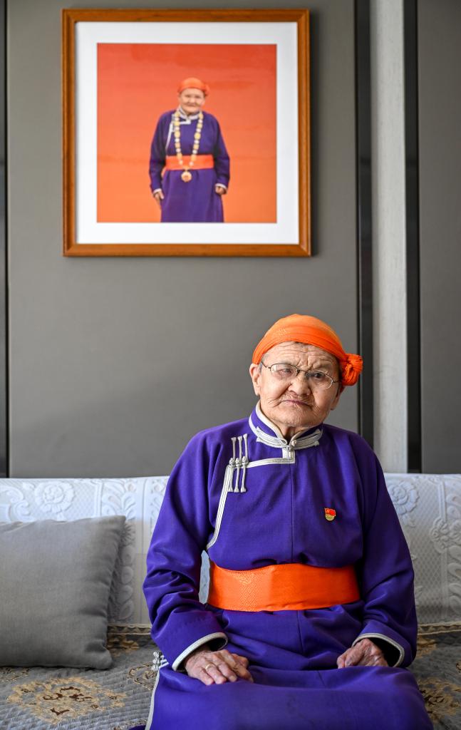 每当有“国家的孩子”来看望都贵玛老人时,她都会叮嘱他们好好工作、以身作则、成为下一代人的榜样。“看到他们在自己的工作岗位上取得了成绩,照顾好草场和牛羊,看到他们有了第三代、第四代孩子,我都很高兴。”都贵玛说。
