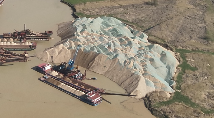 截至督察进驻,相关企业累计非法采砂1903万吨,挖空孟姜垸洲滩面积2085亩,近四分之一个孟姜垸洲滩被挖空。现场督察发现,孟姜垸洲滩内堆存砂石约17.6万吨。