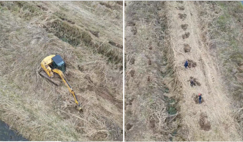 督察组暗查发现,益阳市南洞庭湖省级自然保护区欧美黑杨已清退区域正在挖坑种树。(督察组供图)