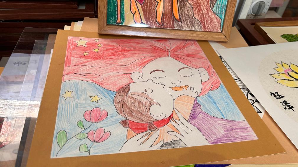 这是憨兜家园的心智障碍者创作的绘画作品。新华社记者李志浩 摄