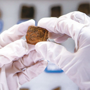 考古工作者在检查河泊所遗址出土的封泥(资料图)。新华社记者江文耀摄