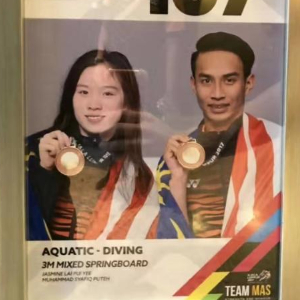 世界泳联杂志报道《马来西亚跳水新生力量》,周希洋和弟子们在新落成的陆上跳水训练场地合影