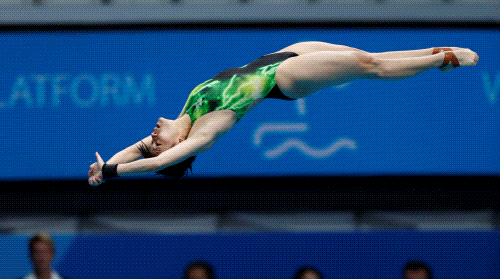 2017年布达佩斯游泳世锦赛,张俊虹夺得女子10米台冠军。新华社记者丁旭、龚兵摄