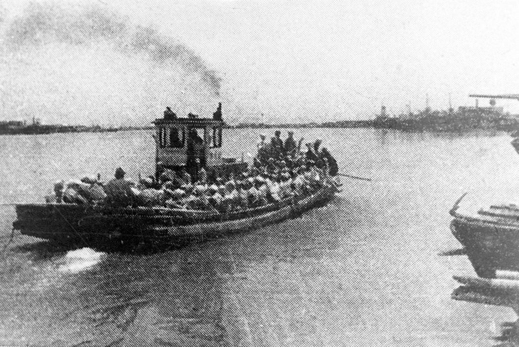 解放军横渡黄浦江口进入上海市区的第一船。