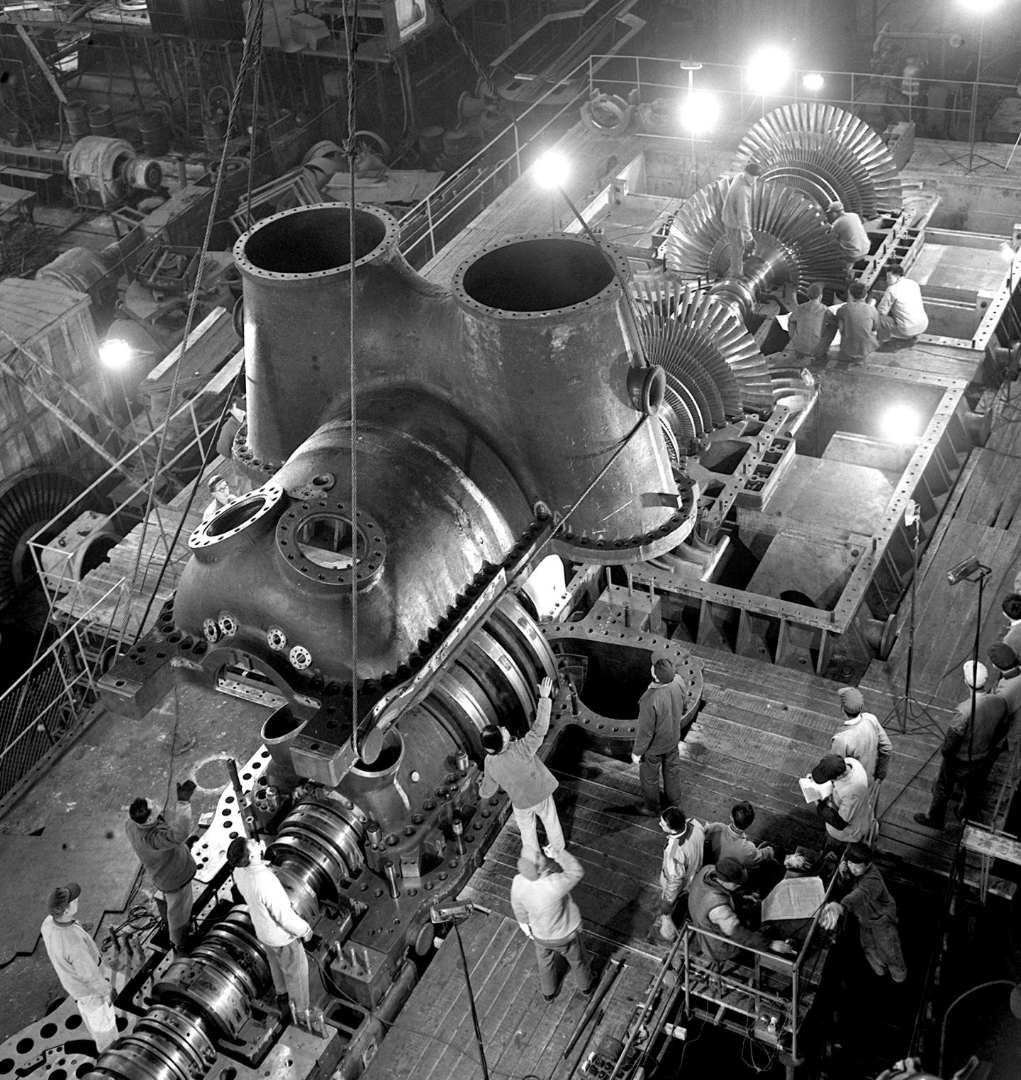 1972年,上海汽轮机厂工人在组装一台大容量的汽轮机。